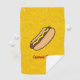 Icono de Hot dog. Iconos de contorno de comida basura fondo de patrón amarillo. Texto personalizado.