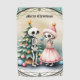 Huesos, baubles y un poco de magia - el espectáculo de los Navidades esqueletos. El esqueleto delantero lleva un vestido rosa lúdico y un sombrero de Santa Claus clásico, que le confieren a la imagen un toque alegre e inusual. Tiene un pequeño adorno brillante, listo para decorar el árbol. El segundo esqueleto se alza junto al árbol, sosteniendo también un adorno, que se aferra con cariño para complementar la decoración festiva. El árbol de Navidad está lujosamente decorado con adornos coloridos de diferentes colores y formas, lo que le da un aspecto animado y alegre.