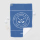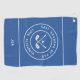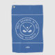 Características divertidas de diseño personalizado con hierros de golf cruzados y bordeados con pelota de golf con el texto curvo "MEJOR ABUELO POR PAR, AMOR NOMBRE PERSONALIZADO" en una divertida fuente blanca moderna acentuada con dos bordes circulares blancos y dos franjas blancas. También encontrarás una plantilla fácil de usar para el nombre monograma de tu papá, iniciales o texto personalizado también en blanco. El fondo es azul real de moda. Si tienes alguna pregunta sobre este o alguno de mis diseños, por favor contacta con beachpausedesigns@gmail.com. Se aceptan solicitudes de colores personalizados.