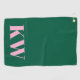 Toalla de golf personalizada con iniciales de monograma rosa y verde modernas