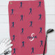 Diseño de golf lindo con una silueta de golfista femenina con patrón repetido en azul oscuro sobre un fondo rojo magenta sólido de moda. Agrega un nombre personalizado y una letra inicial en rosa y blanco con la plantilla moderna fácil de usar. Todos los colores de este diseño se pueden editar fácilmente en la herramienta de diseño. Utilice la función de mensaje si tiene alguna pregunta o desea solicitar un color personalizado.
