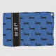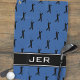 El diseño presenta un patrón repetitivo de una figura de golfista balanceándose de color negro sólido sobre un fondo azul clásico. Una banda gruesa negra tiene dos pequeñas franjas blancas de acento en el borde y iniciales monogramadas personalizadas (o palabra corta) en blanco. Personalice los colores o manténgalos como fueron creados. El color del fondo y las fuentes se pueden cambiar fácilmente en la sección de herramientas de diseño. Envíeme un correo electrónico a beachpausedesigns@gmail.com si tiene preguntas sobre este o cualquiera de nuestros diseños.
