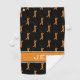 El diseño presenta un patrón repetitivo de una figura de golfista columpiándose de color naranja sólido sobre un fondo negro clásico. Una banda gruesa de color naranja tiene dos pequeñas franjas blancas de acento en el borde y iniciales monogramadas personalizadas (o palabra corta) en blanco. Personalice los colores o manténgalos como fueron creados. El color del fondo y las fuentes se pueden cambiar fácilmente en la sección de herramientas de diseño. Envíeme un correo electrónico a beachpausedesigns@gmail.com si tiene preguntas sobre este o cualquiera de nuestros diseños.
