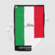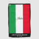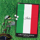 Toalla de golf italiana con colores de bandera italiana rojo, blanco, verde y negro con nombre inferior y texto extra para un cumpleaños o cualquier cosa que elija. Un regalo perfecto para los golfistas italianos. Personalizar el texto para un regalo personalizado.