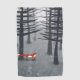 Un único zorro rojo salvaje se encuentra bajo los pinos, en un bosque oscuro. Por la naturaleza, la vida salvaje y los amantes de los animales.