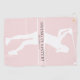 A bold women’s golf design featuring a powerful female golfer silhouette in white against a blush pink background, and the phrase “Swing It Sister!” in gray, with a personalised three-initial monogram and city and state, also in gray text. The phrase can also be edited, in case you wish to change it to something else.