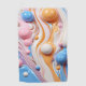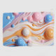 Un primer plano de un líquido colorido y espumoso con pequeñas burbujas redondas flotando en la superficie. El líquido es un azul vibrante con toques de rosa y morado.