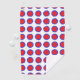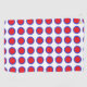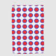 Lunares rojos resumidos en azul contra un fondo blanco.