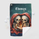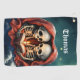 Magical winter moments, two skeletons reading by candlelight on a winter night. Two skeletons cuddle lovingly under a red blanket while reading a book together. A small candle provides warm, diffused light, making the scene cozy and slightly mysterious. In the background, stars and snowflakes shine in the dark sky, while snow lies on the floor and ceiling. The winter landscape with pine trees creates a tranquil, enchanting atmosphere full of warmth and magic.