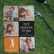 Sorprenda a su abuelo profesional del golf con un Día del Padre, Navidades o regalo de cumpleaños que puede usar orgullosamente en el campo de golf! Añade 4 (cuatro) fotos personalizados a este diseño desde tu teléfono o computadora, el dulce juego de palabras que dice 'Mejor Abuelo por Par', un lindo corazón que se puede cambiar a cualquier color, el nombre de los nietos y personalizar con su nombre bajo un moderno ilustracion blanco de golf. Todo el texto y los colores se pueden personalizar utilizando la plantilla proporcionada.