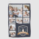Celebra este Día del Padre o Día de los Abuelos con este impresionante toalla de personalizado de collage de fotos. El diseño azul marino incluye ocho fotos cuadradas (una grande y siete pequeñas) con una insignia temática al golf que lleva las palabras "Certificado Mejor Abuelo por Par" con laureles verdes y una bolsa de golf.