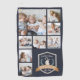 Celebra este Día del Padre o Día de los Abuelos con este impresionante toalla de personalizado de collage de fotos. El diseño azul marino incluye ocho fotos cuadradas (una grande y siete pequeñas) con una insignia temática al golf con las palabras "Mejor Grampa por Par" con laureles verdes y una bolsa de golf.