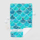 Modalidades de la escala de sirena giratoria, verde menta y turquesa. Las básculas son acuarelas pintadas y algunas están llenas de agua de mar como contrastes. Un marco blanco y azul claro y Su nombre (x3) El nombre se escribe dos veces con un guiño de estilo con letras a mano y una vez con letra de bloque. ¡Perfecto para un día de verano!
