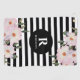 Diseñado a partir de mi retrato de flor acuarela de rosas blancas 'ballerina' con sus colores rosa pálido, con muchos rosas listos para florecer y rodeados de follaje verde oscuro a su alrededor. El producto tiene rayas clásicas en blanco y negro y monograma de la primera de su elección en el centro y nombre impreso bajo el monograma, personalizar éstas en mi tienda para un diseño personalizado.