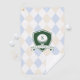 Modern Blue Pattern Green Golf Ball Name Monogram Golf Towel features a soft blue and beige argyle pattern that creates a timeless, preppy aesthetic with a charming feminine touch. The classic diamond layout forms a balanced and polished background, while the deep green crest-style emblem at the center adds contrast and structure. The monogram letter and personalized name banner layered within the shield give the design a refined, collegiate-inspired feel.
