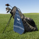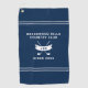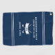 Upgrade your game-day essentials with this sleek Personalized Black Golf Towel featuring monogram initials and a modern crossed-clubs emblem. Designed for golfers who value both timeless style and practical function, this customizable golf towel makes a striking addition to any bag. The bold navy blue background, accented by clean white dividing stripes, creates a sophisticated layout that highlights your custom text. Personalize the center with your country club name, a favorite golf quote, or any message that reflects your identity on the green. Below, classic white crossed golf clubs are framed by a curved ribbon banner that showcases your custom monogram initials, adding an elegant, personalized flourish. A final line beneath the design lets you display the year established or another meaningful detail, making this towel a memorable keepsake. Ideal for Father's Day, golf tournaments, birthdays, or gifts for your favorite golf enthusiast, this monogram golf towel balances professional polish with standout personalization—perfect for making your mark on the course.