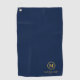 Esta toalla personalizada es sencilla, sofisticada y elegante. Presenta un fondo azul marino con un monograma dorado y tipografía de escritura para su personalización. Los colores se pueden personalizar a su elección
