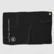 El moderno diseño de toallas de golf tiene un fondo negro, con su monograma inicial y su nombre en blanco es un estilo profesional sencillo y elegante.