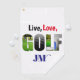 Exprese su amor por el juego del golf con esta toalla de Live, Love, Golf que presenta un collage de colores de escenas de golf. También hace un gran regalo para el Día de la Madre, el Día del Padre o un cumpleaños. Personalice con el monograma o el nombre de su elección. El color y el tipo de letra del texto se pueden cambiar para que se ajusten a sus preferencias.
