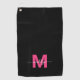 Toalla De Golf Monograma de nombre inicial rosado negro