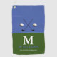 Para personalizar con nombre e inicial del golfista... un diseño monocasco de diseño en toalla de golf verde y azul