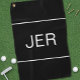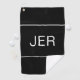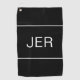 Toalla de golf clásica en negro y blanco con tu monograma personalizado en una fuente limpia y sombreada entre dos franjas modernas. Un diseño simple y elegante para golfistas que prefieren su equipo nítido, masculino y personalizado. Personaliza al instante con la plantilla fácil. Es un regalo considerado para cumpleaños, jubilaciones, torneos o cualquier golfista que aprecie un monograma limpio y moderno. Colores coordinados y accesorios de golf a juego están disponibles en nuestra colección integrada.