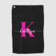 Esta sencilla y moderna toalla de golf con tu primer nombre en una letra de guión de moda en blanco y tu primera inicial en una moderna letra de tope en rosa caliente sobre negro es perfecta para ti. Es de diseño y a la vez muy clásico. Es único, como tú. Consigue una pareja para que siempre tengas una limpia a mano.