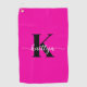 Esta sencilla y moderna toalla de golf con tu primer nombre en una letra de guión de moda en blanco y tu primera inicial en una moderna letra de tope en negro sobre rosa caliente es perfecta para ti. Es de diseño y a la vez muy clásico. Es único, como tú. Consigue una pareja para que siempre tengas una limpia a mano.