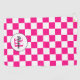 Toalla de golf Monograma retro geométrico blanco y rosa caliente. Personalice los accesorios de golf con su nombre y inicial personalizado. Patrón cuadrado geométrico retro de verificador rosa caliente Guay diseñado para los jugadores de golf.