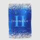 Crea tu propia toalla de golf en monograma personalizada. Gráfica de arte digital de color falso en Relieve metalizado azul oscuro real y purpurina plateado a lo largo de los bordes superior e inferior. Monograma contemporáneo en blanco y azul brillante con un elegante diseño de caligrafía de diseño. Puede hacer personalizar y cambiar el estilo o color de la fuente como prefiera. Todo el brillo del satén y los efectos purpurinas brillantes se imprimirán como una foto en tu regalo.