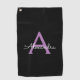 Toalla De Golf Morado Black Script Girly Monograma Nombre