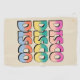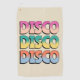 Diseño de texto de estilo retro grunge colorido "Disco Disco Disco Disco" con decoración de letras a rayas