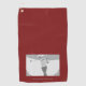 The Golf Towel features a calm design in dark red tone. An stylish man playing Golf. He is focused on his shot.