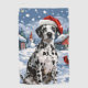 Este diseño festivo capta el alegre espíritu de la temporada navideña, con un adorable cachorro vestido con un sombrero de Santa. El perro está enclavado en un maravilloso país invernal, con un muñeco de nieve, un árbol de Navidad decorado y regalos hermosamente envueltos. Los copos de nieve caen suavemente, añadiendo un toque mágico a la escena, mientras que los vivos colores de la decoración navideña crean un ambiente cálido y alegre.
