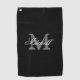 Toalla de golf negra monograma elegante y personalizada. Regalos de golf monogramados para hombres y mujeres. Plantilla de tipografía de guión elegante para el nombre y la letra inicial. Ideas de regalo de cumpleaños de lujo para golfista, esposo, padre, padre, amigo, compañero de trabajo, jefe, colega, entrenador, entrenador, entrenador, profesor, abuelo, jubilado, etc. Añade tu propio apellido o cita graciosa. Incluyendo gancho para colgarlo. Accesorios de golf únicos para amigos y familia.