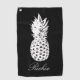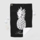 Toalla de golf negra personalizada con imagen de piña. Elegante regalo de golf para hombres y mujeres que aman el juego. Diseño elegante con nombre personalizado.