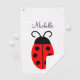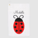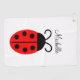 Toalla de golf con nombre de mariquita roja y negra. Es fácil cambiar el texto.