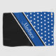 Ir al campo de golf con estilo con esta toalla de golf. Tiene un azul profundo con puntos de polka blanco, el nombre en una fuente de escritura, y tiene una base negra. Perfecto para el día de la madre, un regalo de cumpleaños, o para un chica adolescente golfista. Personalice el nombre en el campo plantilla.