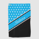Ir al campo de golf con estilo con esta toalla de golf. Tiene un azul cielo con puntos de polka blanco, el nombre en una fuente de escritura, y tiene una base negra. Perfecto para el día de la madre, un regalo de cumpleaños, o para un chica adolescente golfista. Personalice el nombre en el campo plantilla.