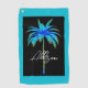 Añade algo de diversión a tu juego de golf con esta Toalla de Golf de Palm Tree Tropical Azul Brillante. Está decorado en tonos turquesa, azul y negro. El árbol tiene un colorido marco azul cielo añadido sobre un fondo negro para mostrar los hermosos colores. Personalizado con el nombre en un elegante y moderno guión blanco centrado en la toalla. Idea de regalo perfecta para las golfistas. HAGA CLIC EN PERSONALIZAR OTRA OPCIÓN DE PLANTILLA E INTRODUCIR NOMBRE.