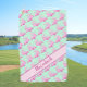 Esta divertida toalla de golf tiene una flota diagonal de pequeños carritos de golf rosados y un nombre editable sobre un fondo verde. Dáselo a la dama golfista en su vida que quiere mantener sus clubs limpios de estilo. Edite el nombre para personalizarlo utilizando la herramienta de edición del listado. Actualice su juego y estilo con nuestras toallas de golf personalizados, perfectas para mantener su equipo limpio y su aspecto afilado. Ya sea que esté comprando para usted mismo o para el amante del golf en su vida, nuestras toallas de golf personalizadas a la venta son un regalo de "hoyo en uno". Estas toallas, hechas de microfibra ultraabsorbente, son suaves, duraderas y de secado rápido, y son ideales para manejar sudor, suciedad y humedad en el curso. Elija entre una variedad de diseños de toallas de golf lindas o cree su propia toalla de caddy personalizado con nombres, iniciales o logotipos.