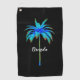 La palmera turquesa tropical es un diseño único en colores vivos de color turquesa, verde y azul con fondo negro y nombre en blanco moderno y moderno guión de caligrafía en el centro. Gran idea de regalo para las golfistas.