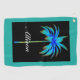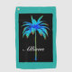 La toalla de golf personalizada Palm Tree Tropical Turquoise es un diseño único en colores azul turquesa y negro. La palmera tiene un color turquesa brillante añadido sobre un fondo negro para mostrar los bonitos colores y un nombre de guión elegante centrado en la parte inferior de la toalla.