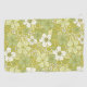 Esta toalla de golf está decorada con flores y hojas en tonos blancos, verde claro y amarillo pálido.