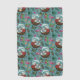 Gráficos de temática tropical de surf retro multicolor en un fondo verde azulado, patrón de repetición sin fisuras