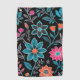 Este patrón impecable presenta una variedad de flores coloridas y hojas sobre un fondo oscuro. Las flores son de varios colores, entre ellos el rojo, el naranja, el amarillo, el rosa, el morado y el azul. Las hojas son azules y grises.