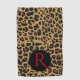 La elegante toalla de golf de una mujer con estampado marrón, negro y marrón jaguar. Un gran monograma rojo de una letra está listo para personalizar. Gran idea de regalo. También hay accesorios de golf a juego.