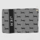 Un aspecto limpio y clásico para el golfista que prefiere un estilo discreto. Esta toalla de golf presenta un patrón repetido de siluetas de golfistas masculinos en negro sobre un fondo gris atemporal. Una banda negra audaz con rayas blancas de acento destaca su monograma personalizado o texto corto, creando un diseño masculino y elegante que funciona en cualquier bolsa de golf.