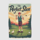 "The Perfect Slice" es un caprichoso ilustracion de un golfista que se prepara para un giro en un pintoresco campo durante la puesta de sol. La escena combina la serena belleza natural con el humor ligero, mientras los patos cruzan el verde. El estilo gráfico vintage añade un toque nostálgico a la obra de arte, capturando el espíritu lúdico del golf y la alegría de estar al aire libre.
