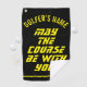Toalla de golf personalizada 'Que el campo esté contigo'. Personaliza con el nombre del golfista y la frase.
